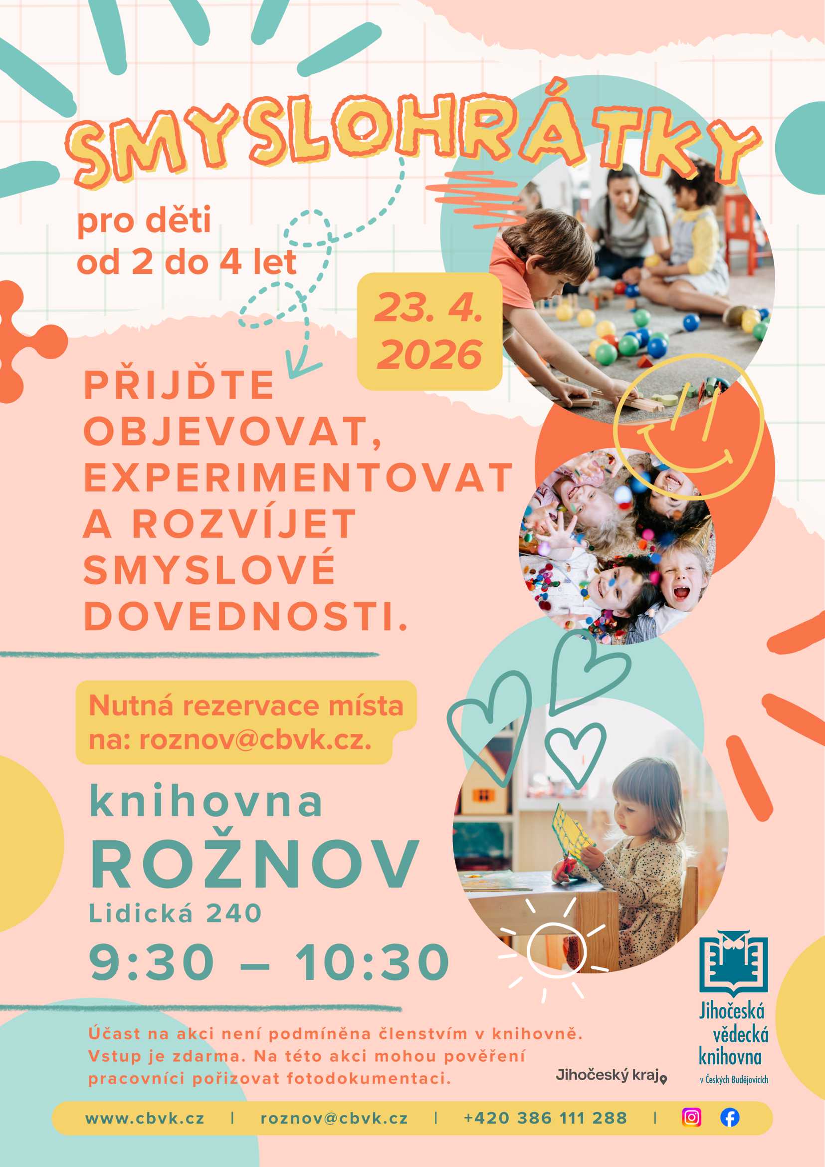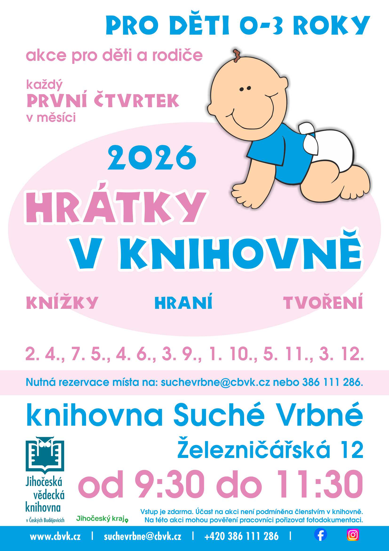 rezervace na: suchevrbne@cbvk.cz, tel. 386111286, čas: 9:30-11:30